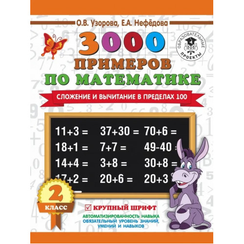 Узорова О.В., Нефедова Е.А. 3000 примеров по математике 2 класс. Счет в пределах 100. Крупный шрифт